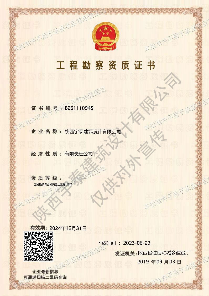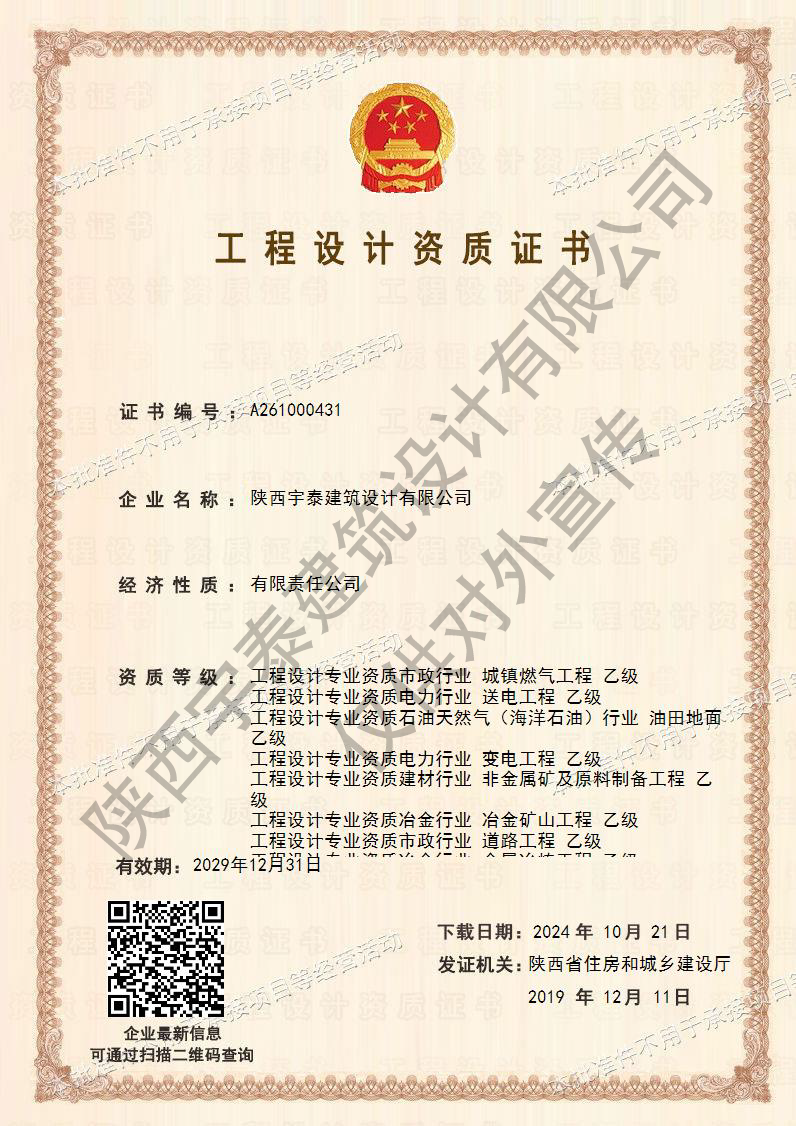 • 熱烈祝賀陜西宇泰建筑設計有限公司工程設計資..